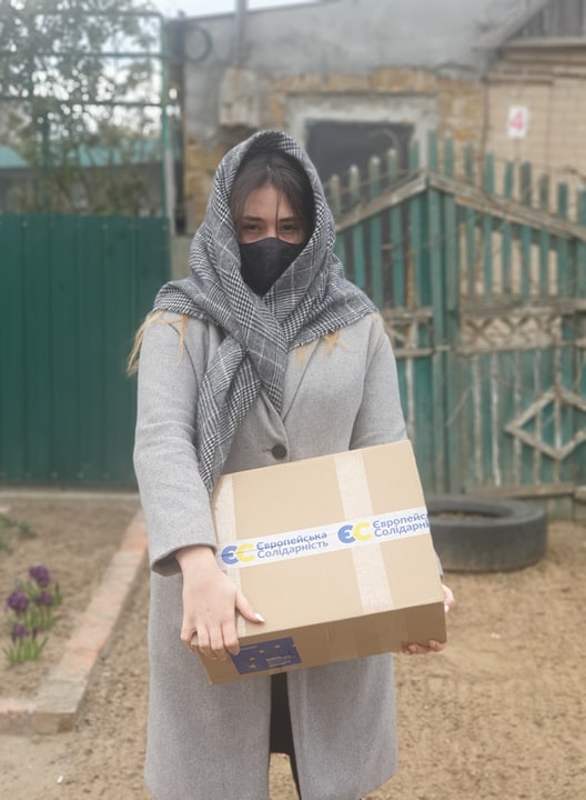 Набори першої необхідності до Мелітополя доставили партійці Запорізької територіальної організації партії «Європейська Солідарність», далі по місцях коробки розвозили волонтери та активісти мелітопольського осередку «ЄС».
